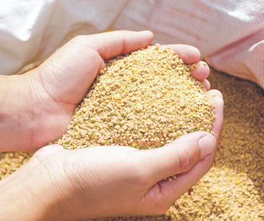 O farelo de soja é considerado a principal fonte de proteína vegetal utilizada mundialmente na alimentação animal, sendo resultado da extração do óleo dos grãos de soja. Apresenta excelente perfil de aminoácidos essenciais e alta digestibilidade.